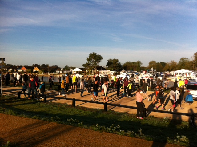 It was a beautiful but chilly morning and I was glad of the extra hoodie I’d put on. There was a steady trickle of runners heading from the station to the race start and we followed them to the beautiful spot on the river back where the race was due to start from.